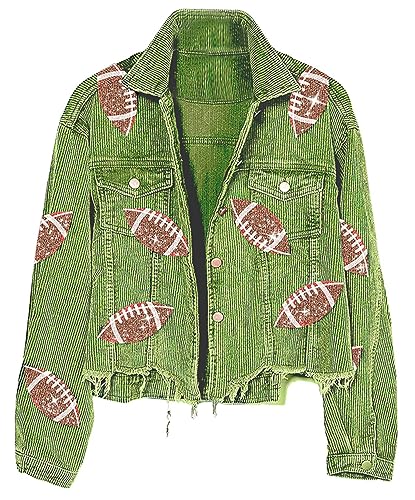 HOT ! Women's Cropped Corduroy Jacket Button Down Vintage Football Sequin Short Shacket with Pockets
