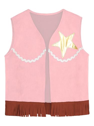 renvena Cowboy Cowgirl Fringe Vest for Kids Sleeveless Open Front Waistcoat Vest Western Dress Up 4