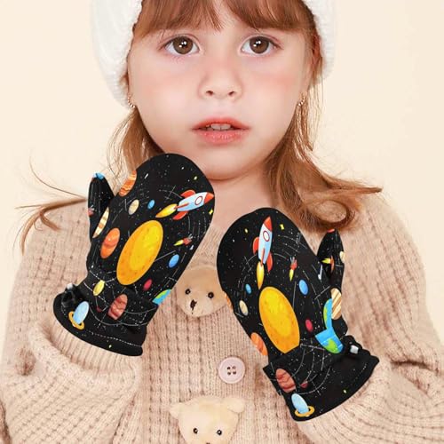 Caikeny Kids Snow Mittens Solar System Planets Toddler Warm Gloves Sun Science Winter Ski Mittens for Girls Boys Baby 2-4 Years S 1