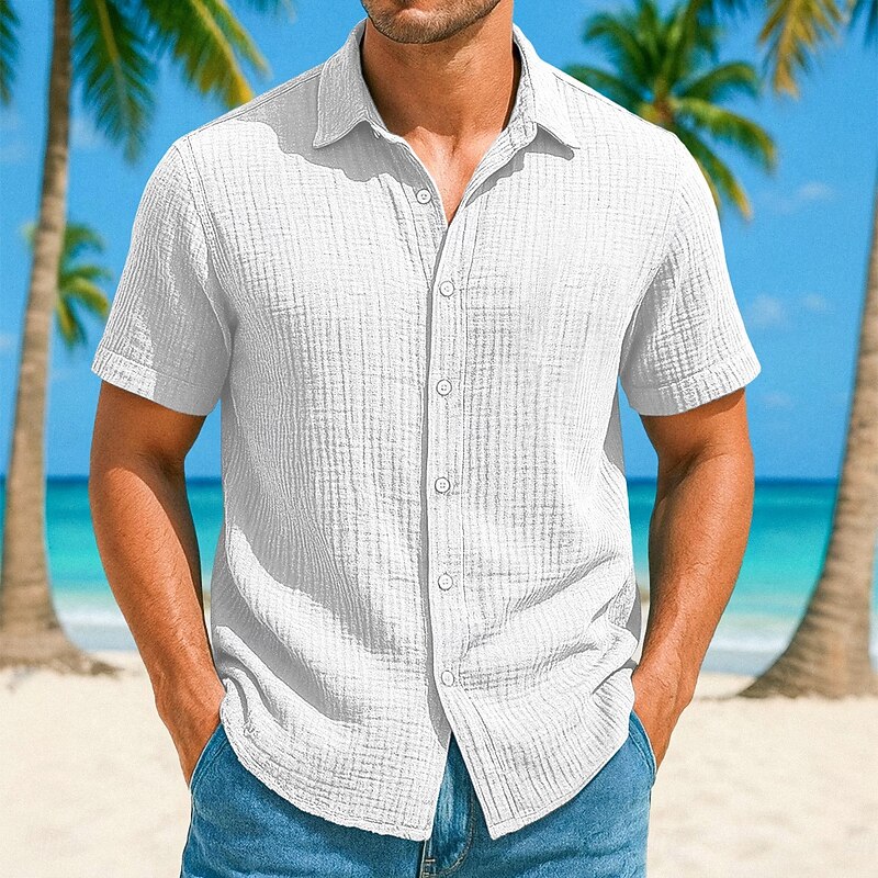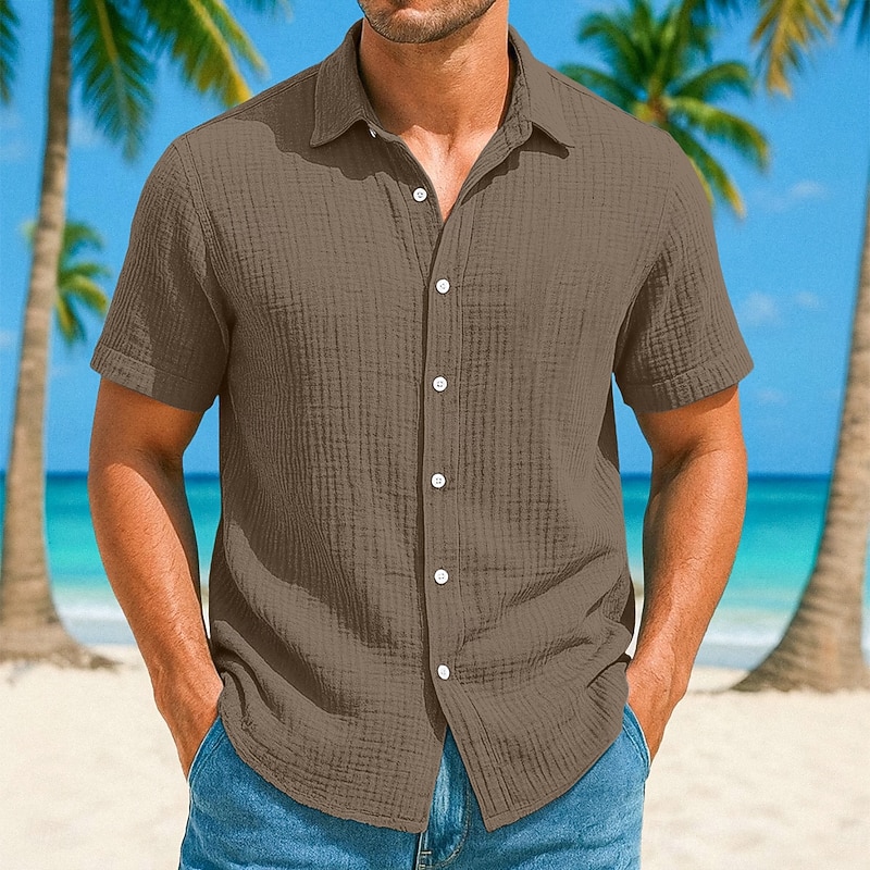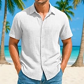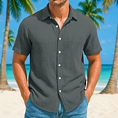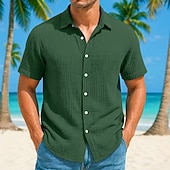 More information about Men's Shirt Linen Shirt Summer Shirt Beach Shirt Plain Vacation Casual White Blue Brown Green Short Sleeve Collar Summer Spring Clothing Apparel Pocket