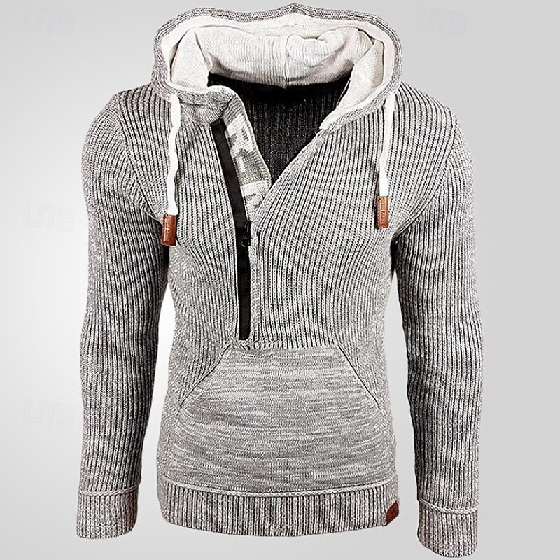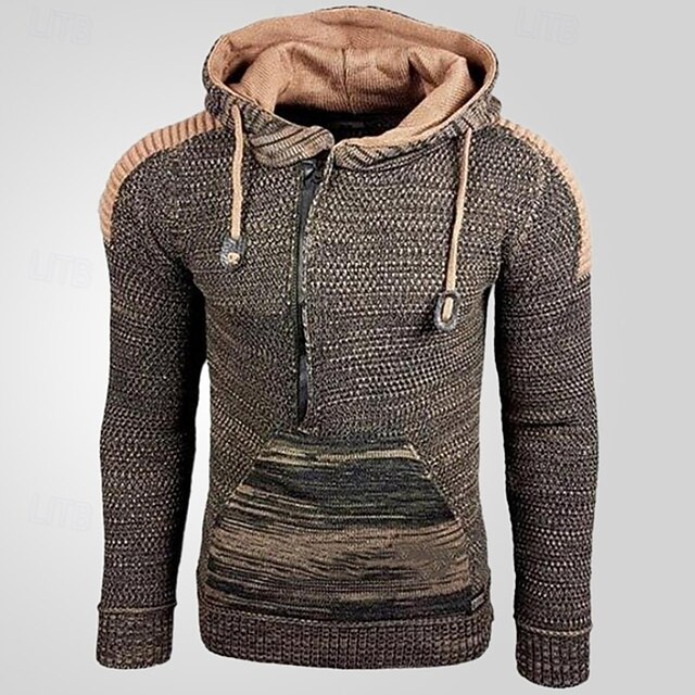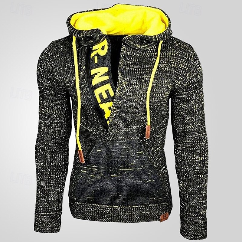 More information about Men's Pullover Sweater Jumper Knit Sweater Ribbed Knit Regular Half Zip Knitted Color Block Hooded Fashion Basic Daily Wear Date Clothing Apparel Fall & Winter Black Yellow S M L