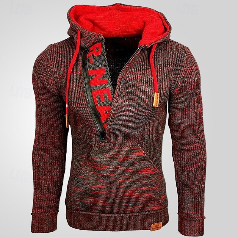 Highlights - Long sleeve hoodie for men - Basic yet stylish design - Perfect for casual occasions, dates, or vacations - Trendy color block pattern - Ribbed knit style for added texture and comfort