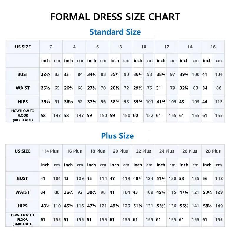 • 【Customize】For specific size information, please refer to the size chart in the picture. We provide customized service, please send us your measurements of the bust, waist, hips by e-mail. Then we will customize the dress for you to make it fit perfectly.