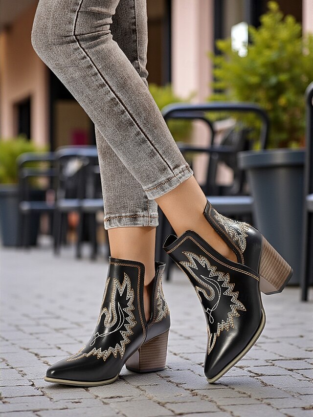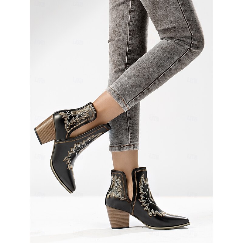 Why Choose Women's Western Cowboy Ankle Boots with Embroidered Detailing, Block Heel Fashion Boots for Casual Urban Wear?