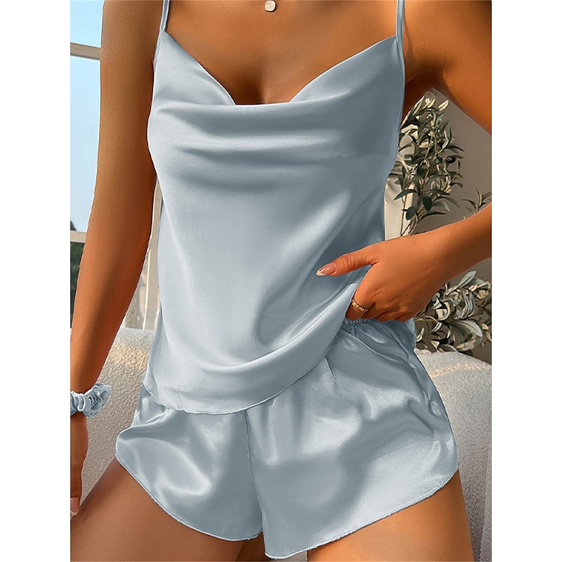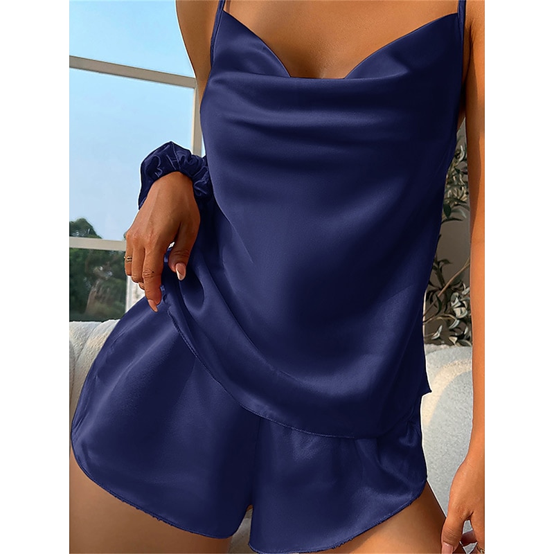 More information about Women's Pajamas Pajama Top and Pant Sets Pure Color Simple Hot Casual Home Daily Bed Satin Silk Breathable Straps Sleeveless Strap Top Shorts Backless Summer Spring Home Outfits