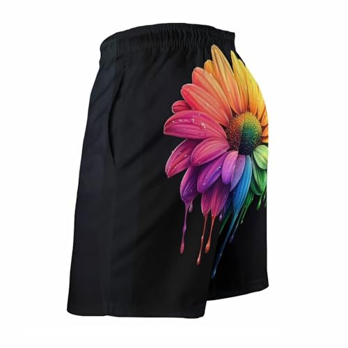 HOT ! Rainbow Daisy Flower Men's Swim Trunks Board Shorts Beachshorts Swimsuits with Pockets Mesh Liner