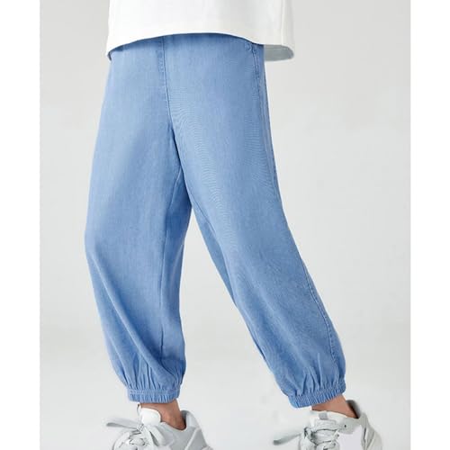 Baggy Blue Jeans for Kids Boys Wide Leg Solid Denim Pants Athletic Elastic Waist Comfy Cotton Slim Fit Jeans Fall