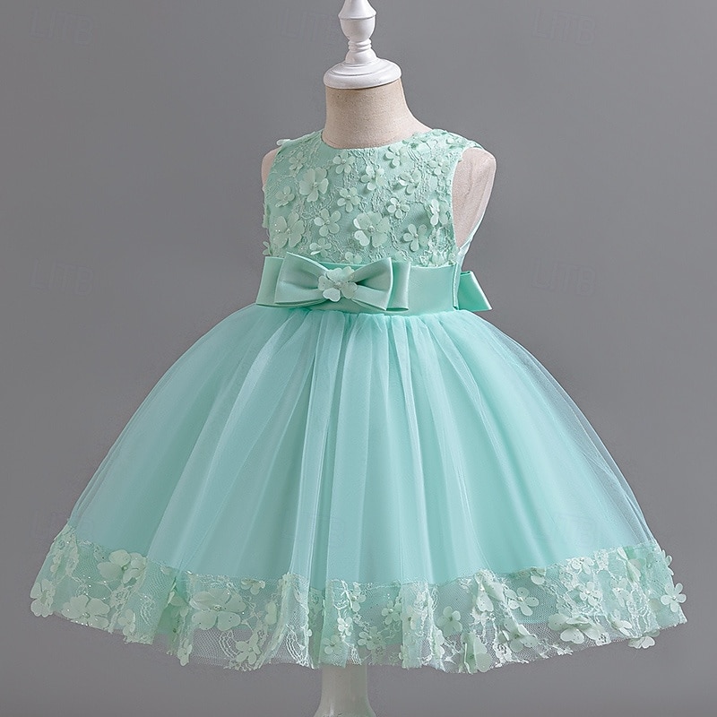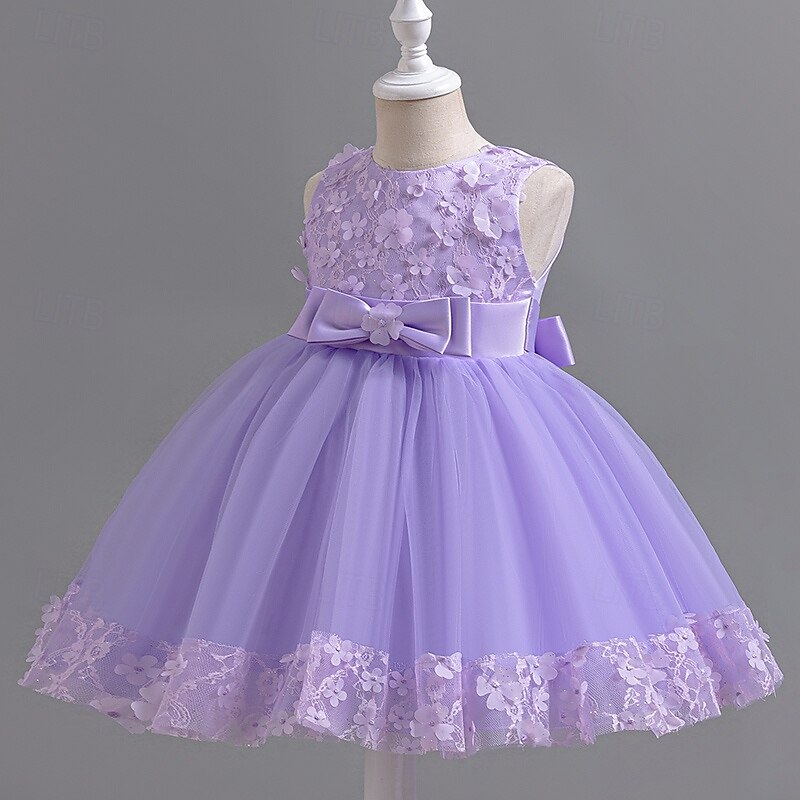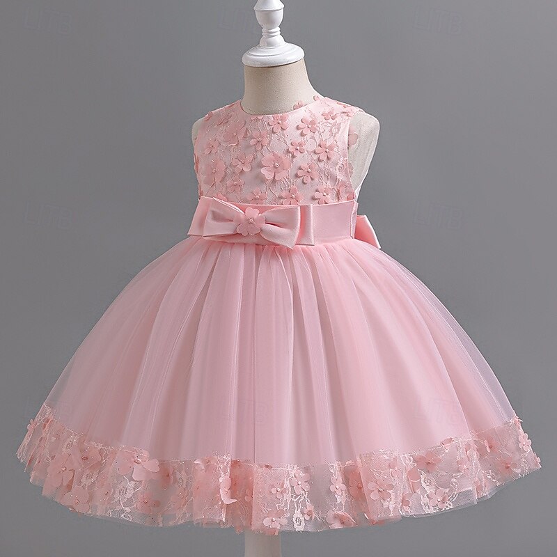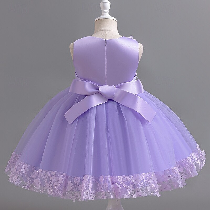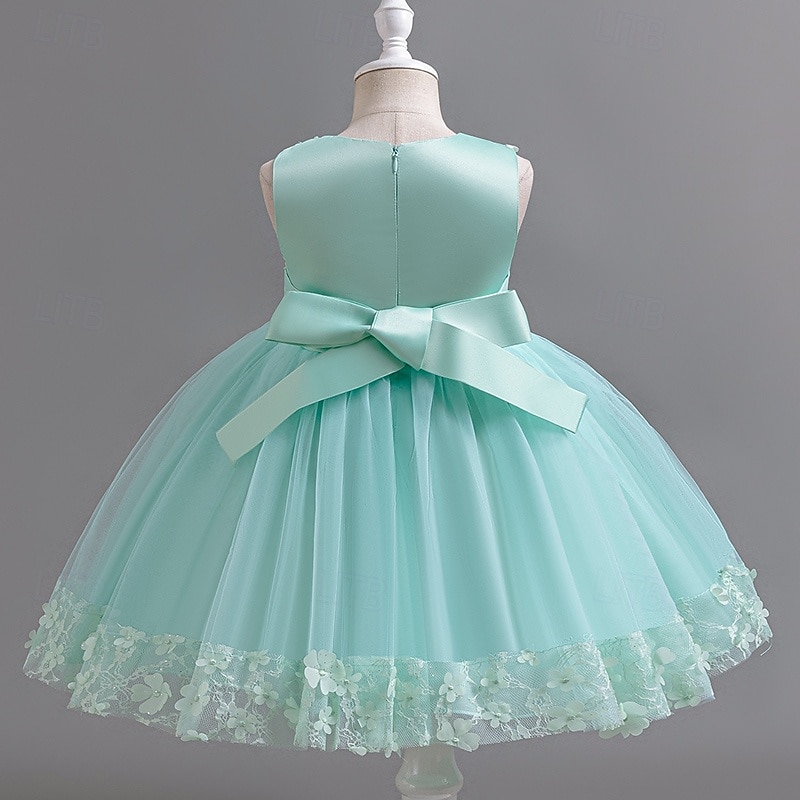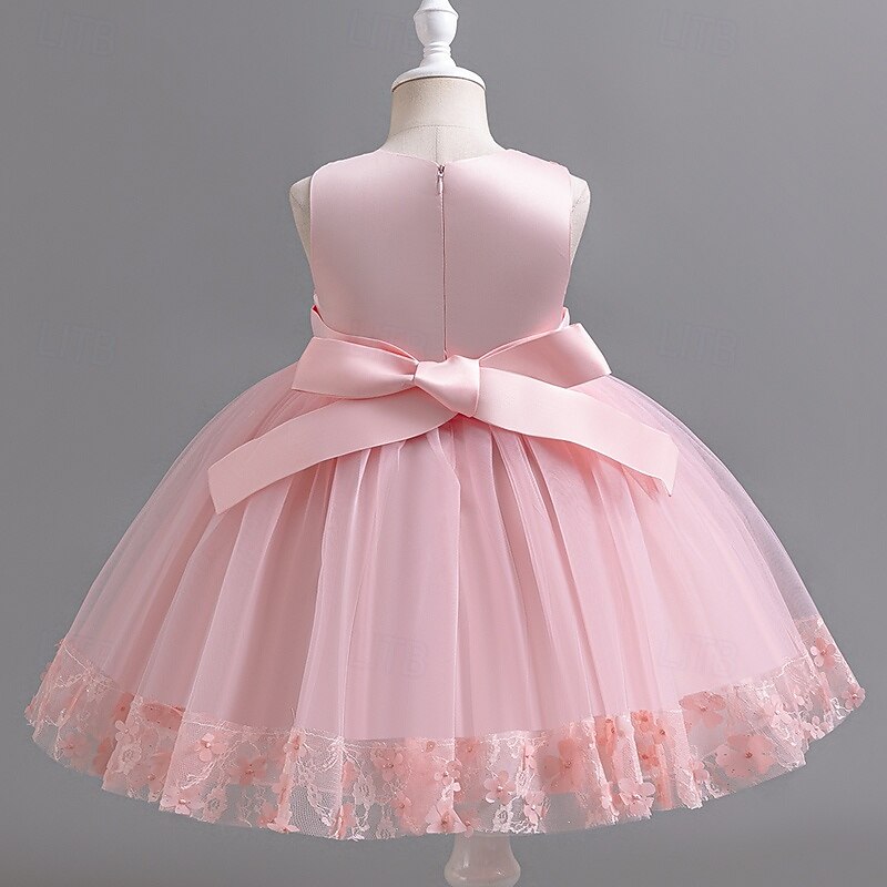 More information about Kids Girls' Flower Girl Dress Party Dress Solid Color Floral Sleeveless Wedding Party Special Occasion Zipper Tie Knot Adorable Sweet Polyester Knee-length Party Dress Summer Spring Fall 3-13 Years