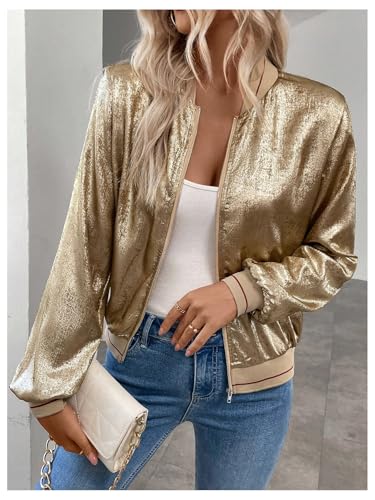 Verdusa Women's Metallic Zipper Bomber Disco Party Jackets Outwear Long Sleeve Lightweight Jacket Coats 6