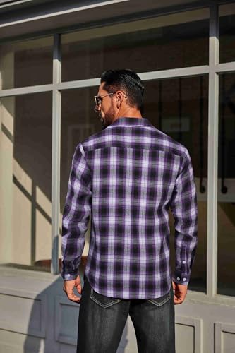 HOT ! COOFANDY Mens Flannel Plaid Shirts Long Sleeve Casual Button Down Cotton Shirt with Pocket