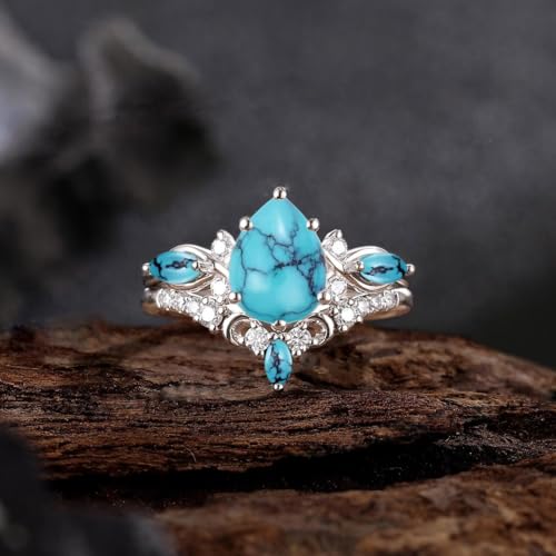 • 💎【Material】 Turquoise (6x8mm Pear Cut).Side Stones: Moissanite and Turquoise.The ring is made of Sterling Silver and 10K/14K/18K pure gold, with 1ct center stone.Completely hypoallergenic, allergy-free, nickel-free, lead-free, cadmium-free to prevent irritation. Size 3-13; Ring size can be customized according to your needs.