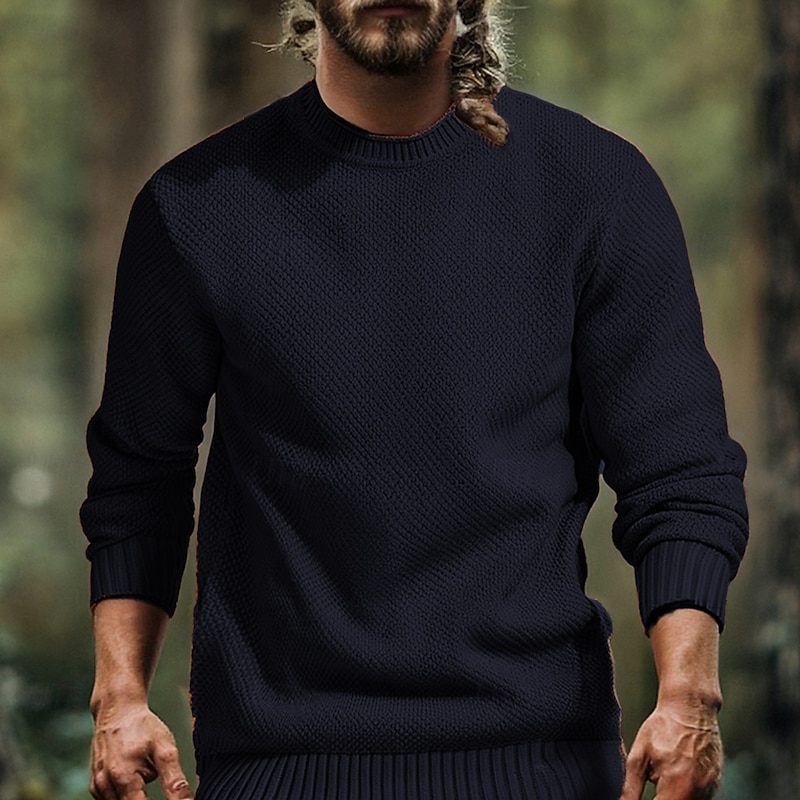 Why Choose Men's Pullover Sweater Jumper Casual Sweater Knit Sweater Ribbed Waffle Knit Tunic Knitted Plain Crewneck Fashion Casual Vacation Daily Wear Clothing Apparel Fall Winter Black Royal Blue S M L?