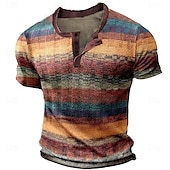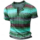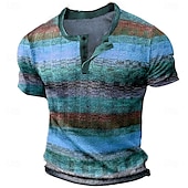 Highlights [Fabric] Expertly crafted from breathable polyester with a micro-elastic quality, this men's t-shirt offers both comfort and durability, using a textured waffle weave for a modern twist on a classic fabric. [Fit Type] Designed with a regular fit that accommodates movement, this short-sleeve t-shirt ensures a relaxed and easygoing style, perfect for summer days. [Design Highlights] Featuring a unique henley neckline accented by a buttoned placket, this shirt combines traditional style with a modern edge. The vibrant graphic color block pattern adds a striking visual element, enhanced by the innovative 3D print detail. [Occasions] Ideal for daily wear, casual outings, and outdoor adventures, this versatile tee fits seamlessly into a variety of settings. Whether you're enjoying a weekend getaway or a relaxed day at home, it complements any laid-back scenario. [Size Range] Available in a wide range of sizes from S to 3XL, ensuring an inclusive fit that caters to various body types and preferences.