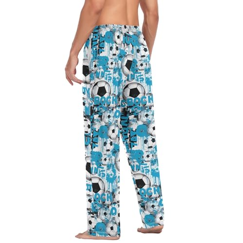 Men’s Blue Football Pajama Pants with Pockets, pleasant Lounge Sleep Bottoms#163