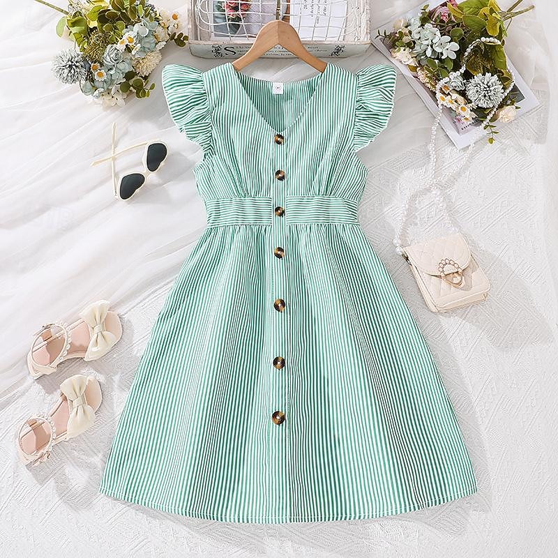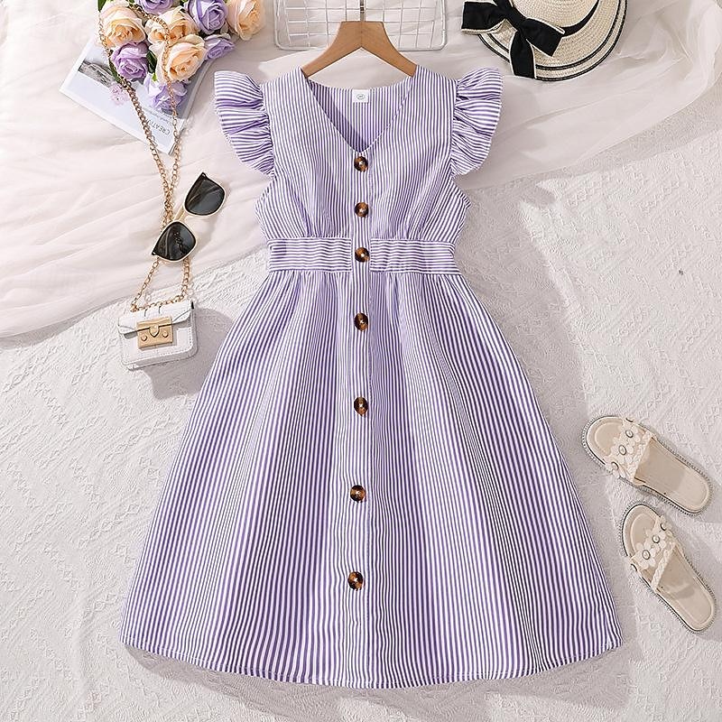 More information about Girls' 3D Striped Dress Ruffle Dress Sleeveless Summer Vacation Daily Holiday Princess Beautiful Sweet Kids 4-12 Years Casual Dress A Line Dress Knee-length Regular Fit