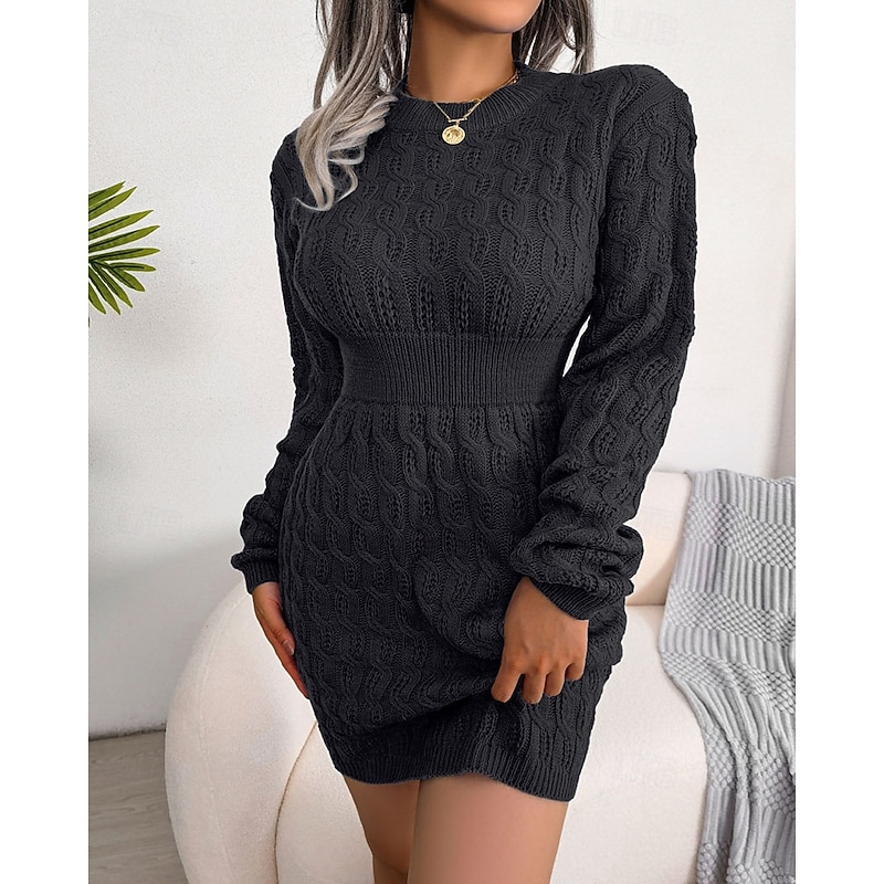 Why Choose Women's Mini Dress Sweater Dress Bodycon Sheath Dress Fashion latest Daily Weekend Regular Fit Plain Long Sleeve Crew Neck Black White Blue Spring Fall?