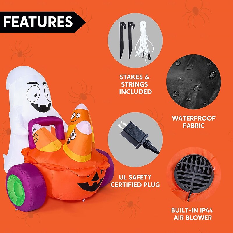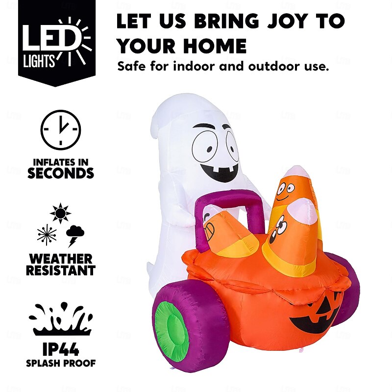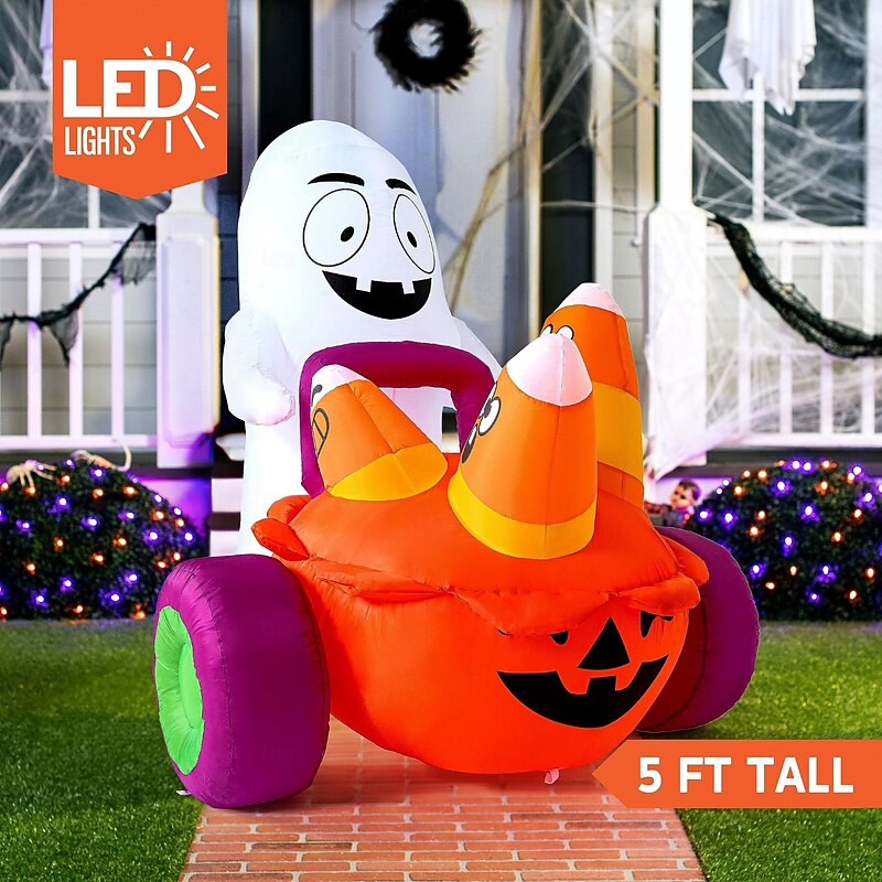 $145.99 - 5 FT Halloween Inflatable Ghost Pushing Pumpkin Carriage with Candy, Blow Up Yard Decoration with Build-in LEDs for Halloween Outdoor Party Indoor, Yard, Garden and Lawn Decor 2025. Shop for cheap Halloween online? Buy at lightinthebox.com on sale today!