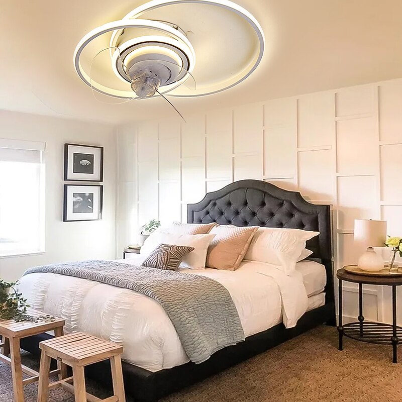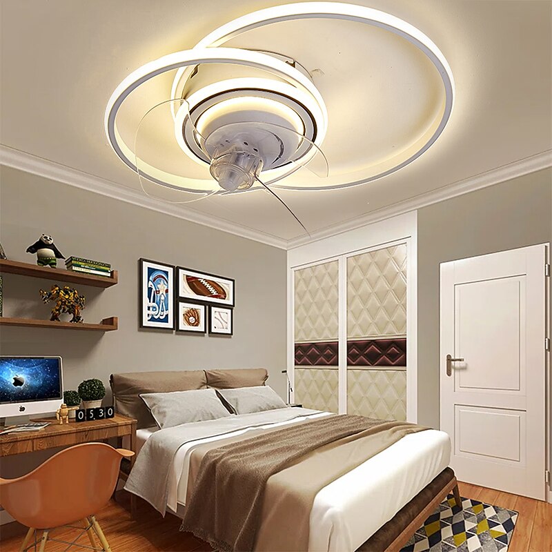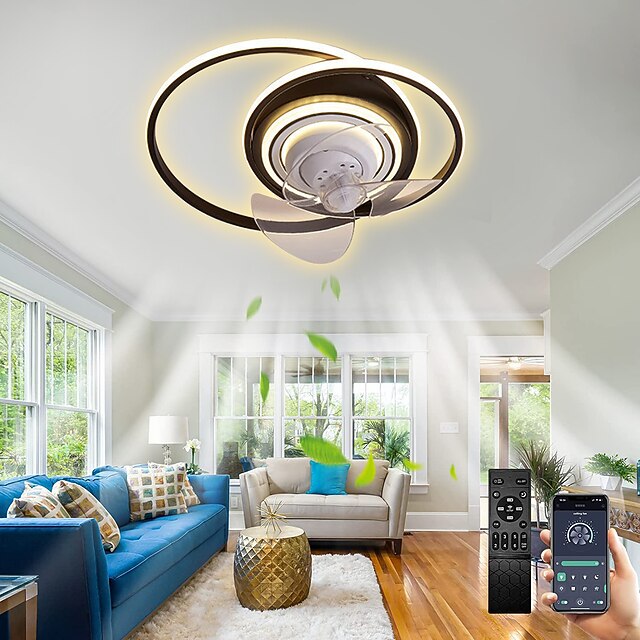 HOT ! Ceiling Fan with Light Circle Design App & Remote Control 50cm Dimmable 6 Wind Speeds Modern Ceiling Fan for Bedroom, Living Room, Small Room 110-240V