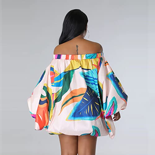 More information about Pulkritu Batwing Long Sleeve Leaf Printed Off Shoulder Elastic Hem Loose Dresses for Women 2023 Summer Fashion Dress