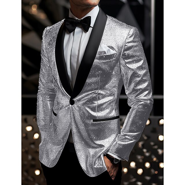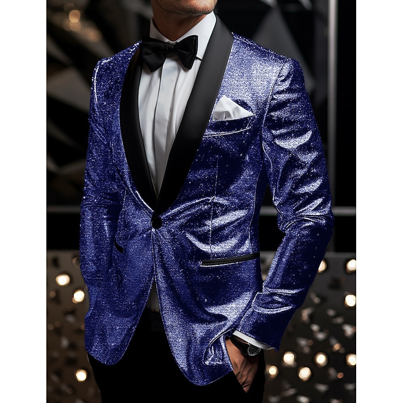More information about Men's Graduation Blazer Business Cocktail Party Wedding Party Fashion Casual Spring & Fall Polyester Sequin Pocket Buttons Comfortable Single Breasted Blazer Silver Black Burgundy Royal Blue