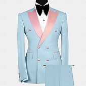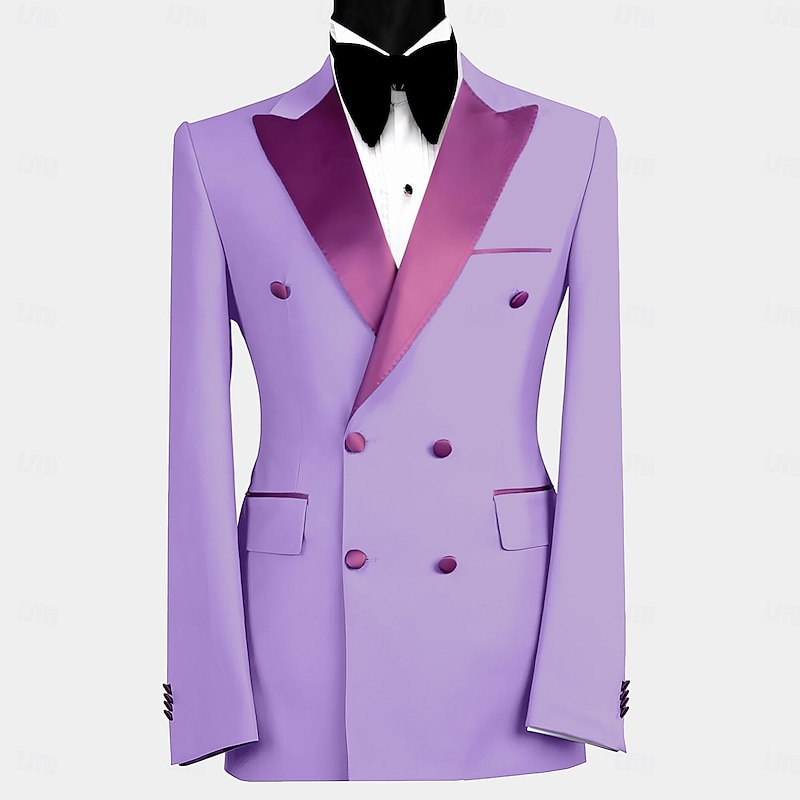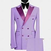 More information about Men's Wedding Party Party Suits Sky Blue Purple Luxury Formal Solid Colored Standard Fit 2 Piece Double Breasted Six-buttons