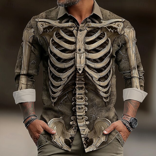 $25.99 - Halloween Men's Optical Illusion Skeleton Shirt Button Up Shirt Long Sleeve Dark Punk Gothic Style Outdoor Holiday Summer Spring Turndown 3D Print Collared Shirts Gold Brown Green Gray 2025. Shop for cheap Halloween Shirts online? Buy at lightinthebox.com on sale today!