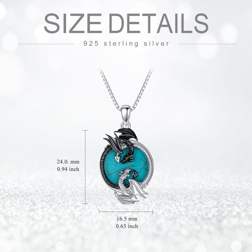 • *Gift for Her*: This genuine turquoise dragon necklace will be packaged in an elegant gift box and delivered to our customers. It's an ideal gift for mom, wife, girlfriend, daughter, sister, granddaughter or friends. Great gift choice for Christmas, birthday, Mother's Day, Valentine's Day, Prom, Anniversary, Graduation, Party and any other holidays or special occasions.