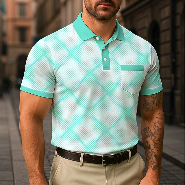 Men's Plaid Polo Short Sleeve Turndown Business Casual Daily Sports & Outdoor Athleisure Casual Daily Pocket Buttons Summer White Navy Blue Green 6