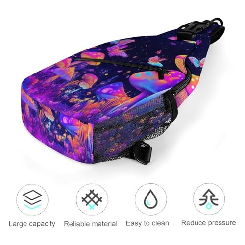 HOT ! Fashion Chest Pack Travel Shoulder Bag, Trippy Magical Mushroom Starry Night Art Purple Small Cross Body Sling Bag For Women Men