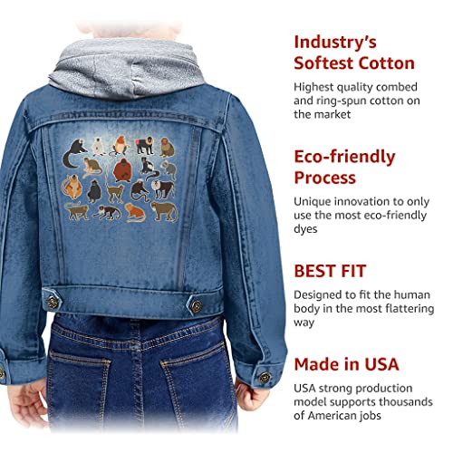 Monkey Illustration Toddler Hooded Denim Jacket - Monkey Themed Gifts - Cute Monkey Lovers Gifts 6