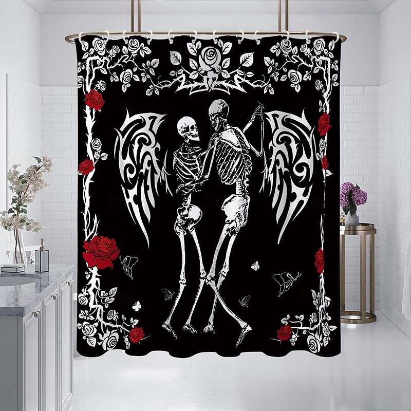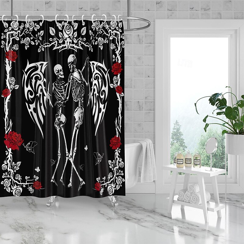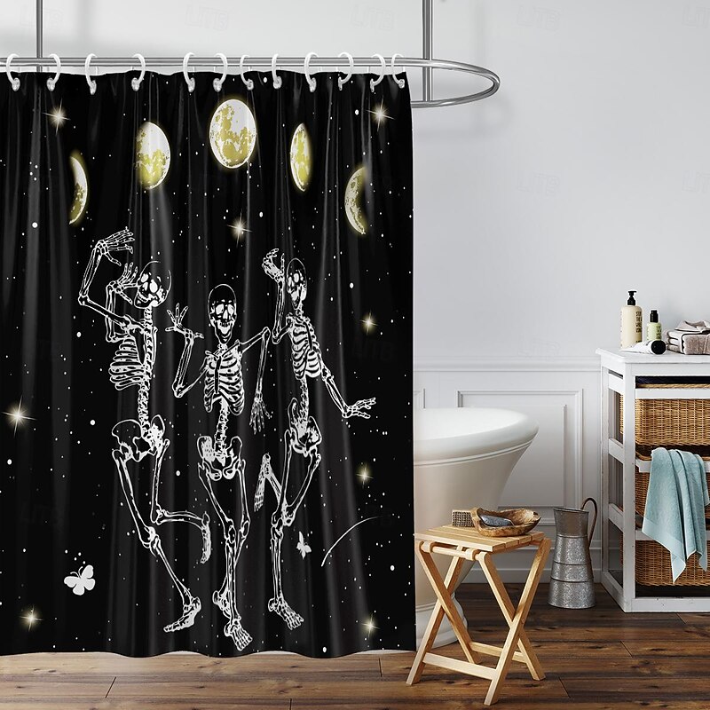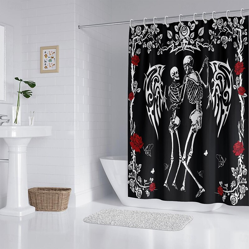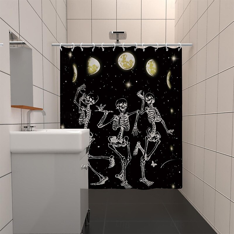 More information about Halloween Skull Shower Curtain, Modern Machine Washable Waterproof Polyester Fabric for Bathroom Decor Bathtub with 12 Hooks