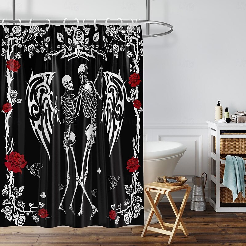 Halloween Skull Shower Curtain, Modern Machine Washable Waterproof Polyester Fabric for Bathroom Decor Bathtub with 12 Hooks 1