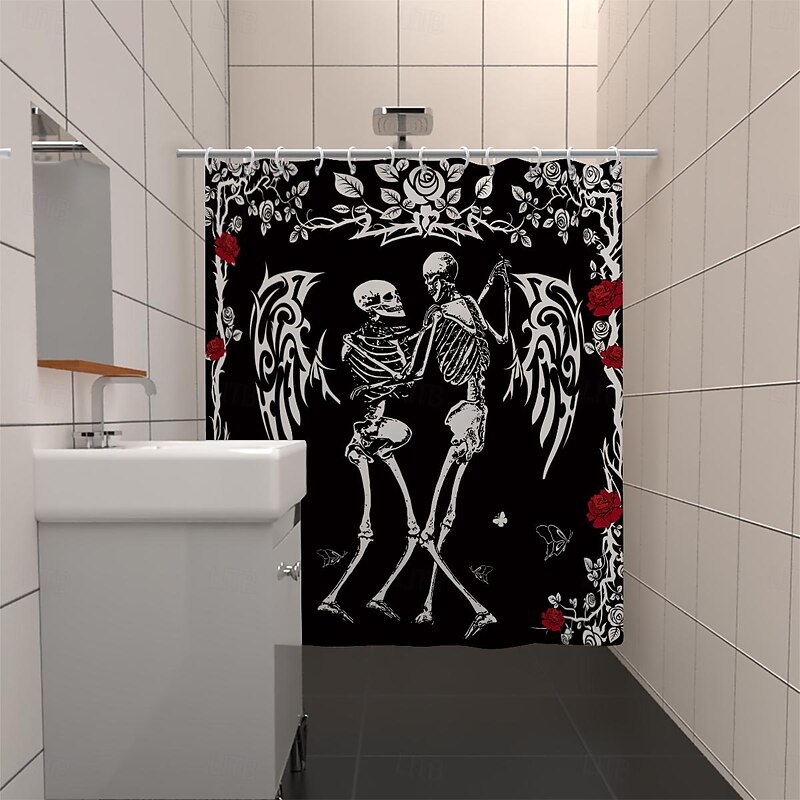 HOT ! Halloween Skull Shower Curtain, Modern Machine Washable Waterproof Polyester Fabric for Bathroom Decor Bathtub with 12 Hooks