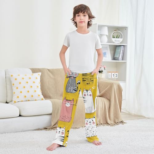Kitten Cats Print Boys Long Pants Soft Trousers Elastic Waist Kids Lounge Bottoms with Pockets S-XL 6