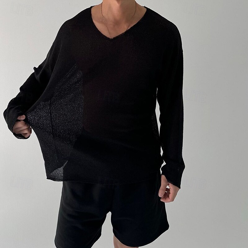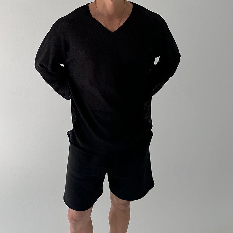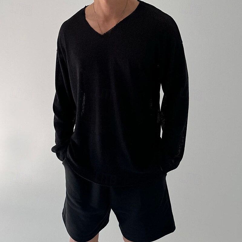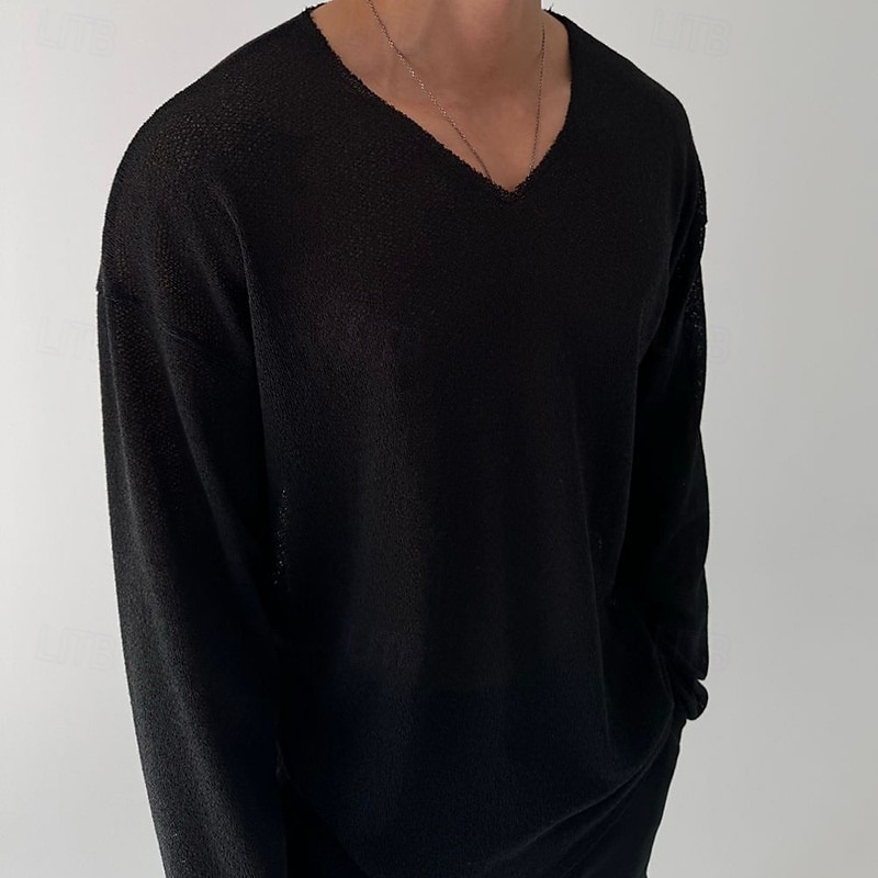 Highlights - Perfect for both spring and fall seasons - Made from high-quality polyester fabric - Features long sleeves for added comfort - Designed for men in a classic and basic style - Ideal for vacation wear - Stylish V-neck neckline adds a trendy touch to the look