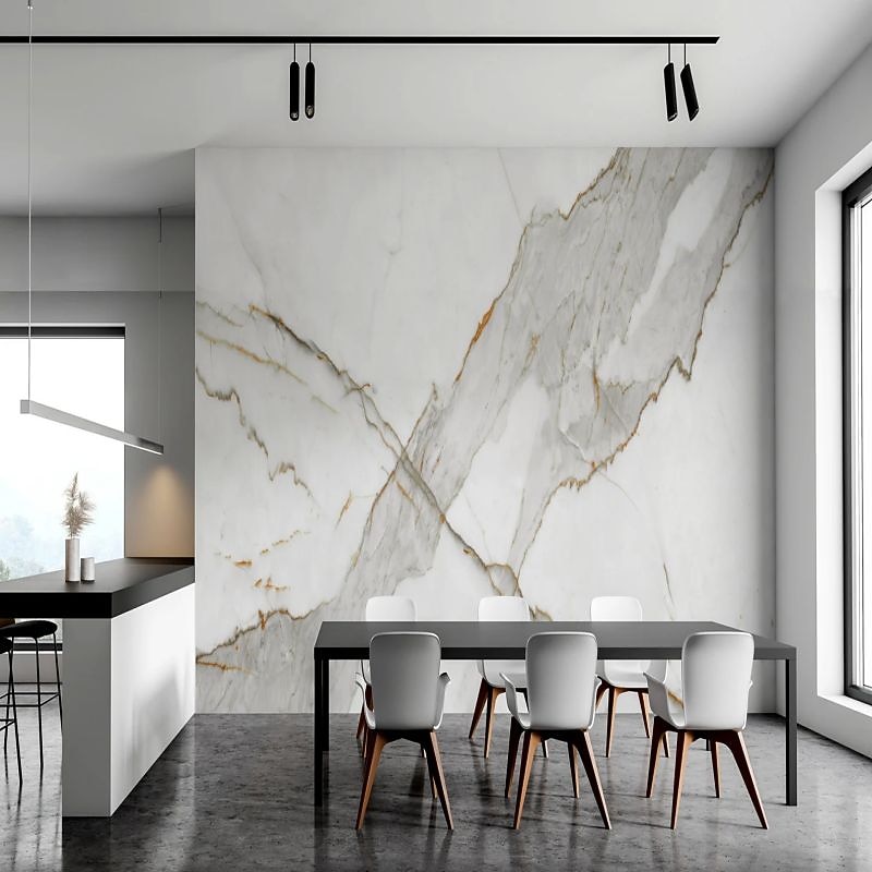 Abstract Marble Wallpaper Mural White Marble Wall Covering Sticker Peel and Stick Removable PVC/Vinyl Material Self Adhesive/Adhesive Required Wall Decor for Living Room, Kitchen, Bathroom 5