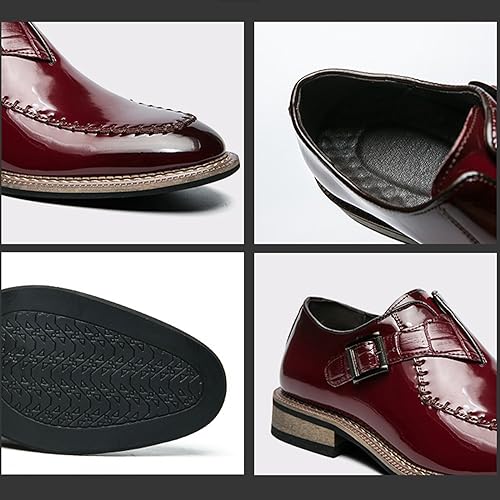 Men's Chunky Heel Oxford Shoes Buckle Pointed Toe Business Dress Shoes Slip On Loafers Brogue Shoes 6