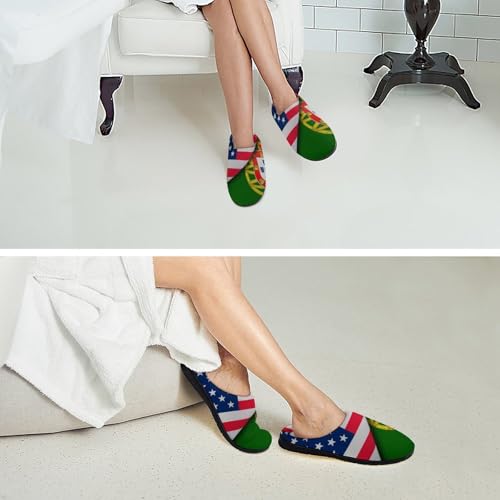 HOT ! United States And Portugal Flags Women's Cotton Slippers Indoor Outdoor Slip-on Warm House Shoes with Anti-Skid Rubber Sole