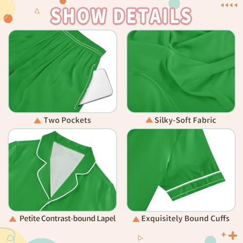 • Classic Two-Piece Design: This boys girls satin silky sleepwear set includes a short-sleeve button-up shirt with a classic lapel design and elastic waistband pull-on shorts, making it easy to wear and remove. The outfit ensures comfort and style for both boys and girls
