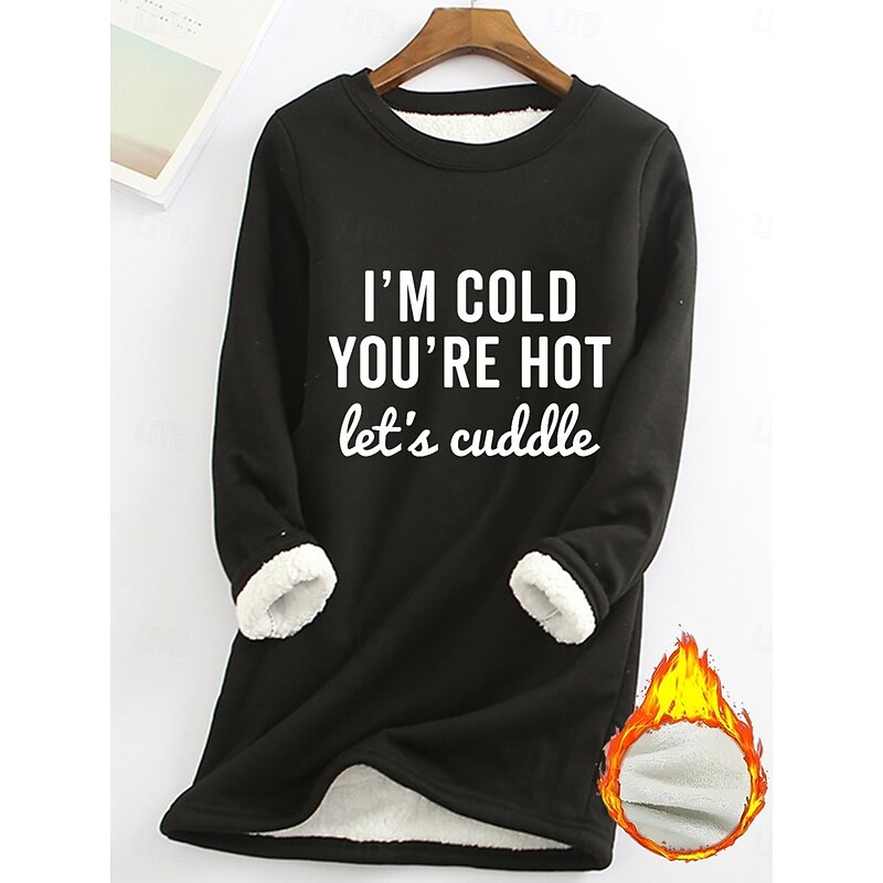 Highlights - Stay warm and cozy with fleece lining - Loose fit for comfortable wear - Fun letter pattern for a trendy look - Stylish print design - Classic crew neck for a versatile look