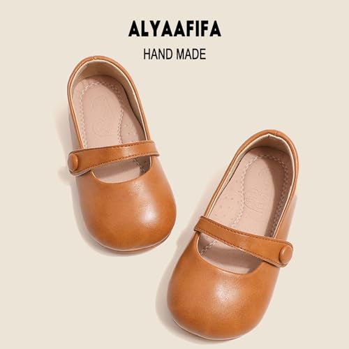 Alyaafifa Cute Mary Jane Flats for Girls Closed Round Toe Ankle Strap Hook and Loop Pumps Toddler Little Kids Big Kid Casual Party School Uniform Dress Shoes Lightweight