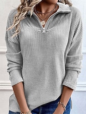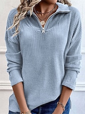 More information about Women's Sweater Pullover Daily Stylish Casual Solid Color Ribbed Half Zip Zipper Knitted Long Sleeve Regular Tops Knit Daily Holiday Going out Black Blue Fall Winter