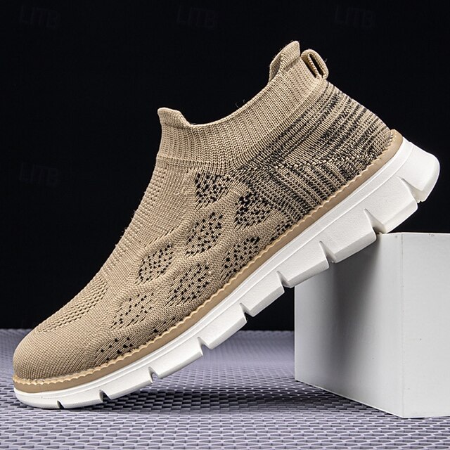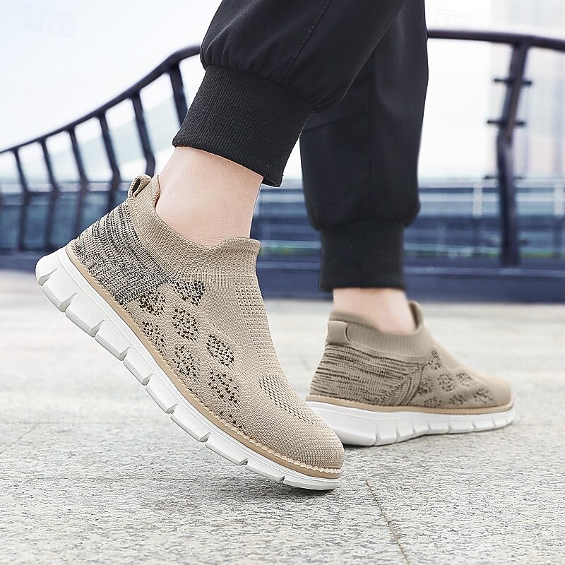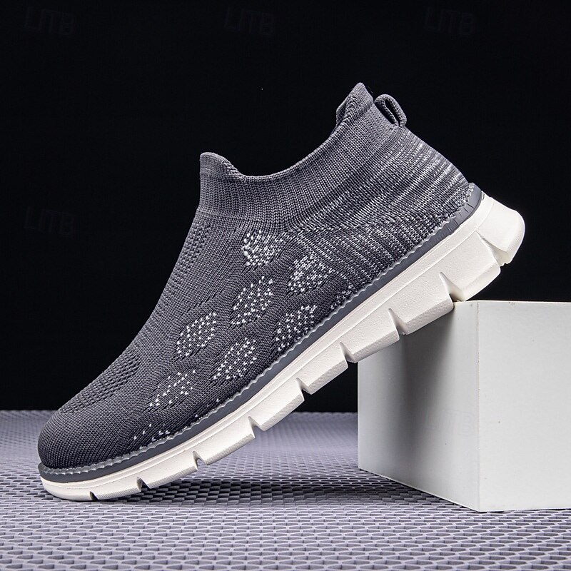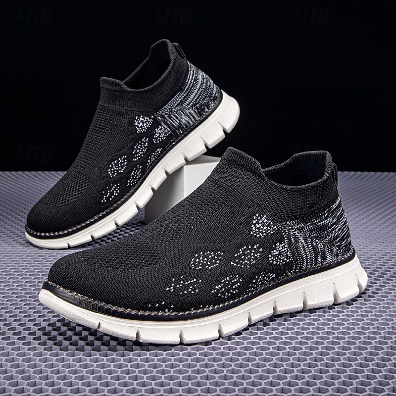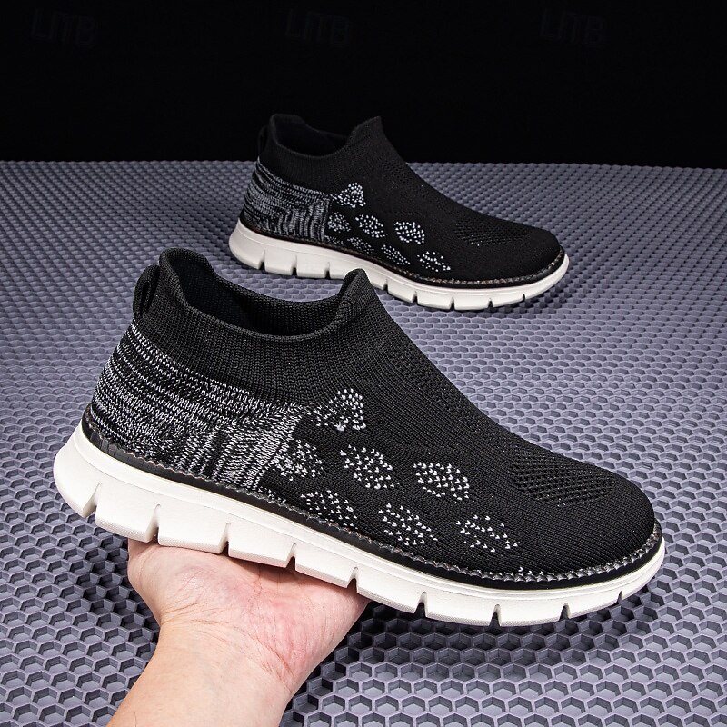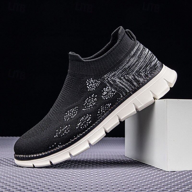 sizzling ! Men's Textured Knit Slip-On Sneakers, Comfort Fit with Fashionable Chunky Sole, Casual Streetwear Shoes