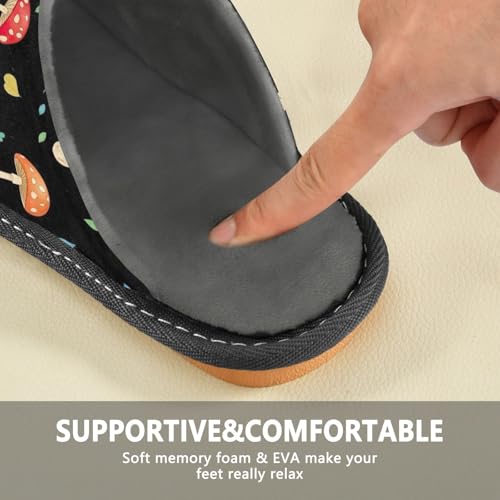 ODAWA Mushrooms Leaves Memory Foam House Slippers Shoes for Grandma Mom, Washable Slip On House Shoes for Women Size 4-5 7