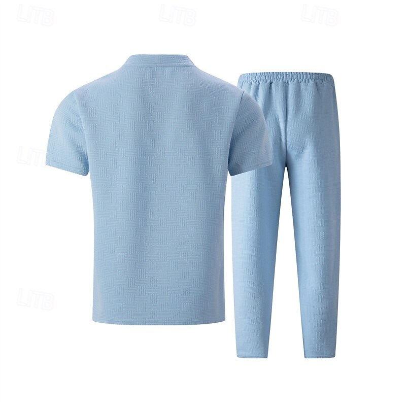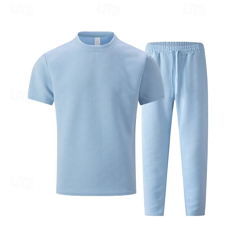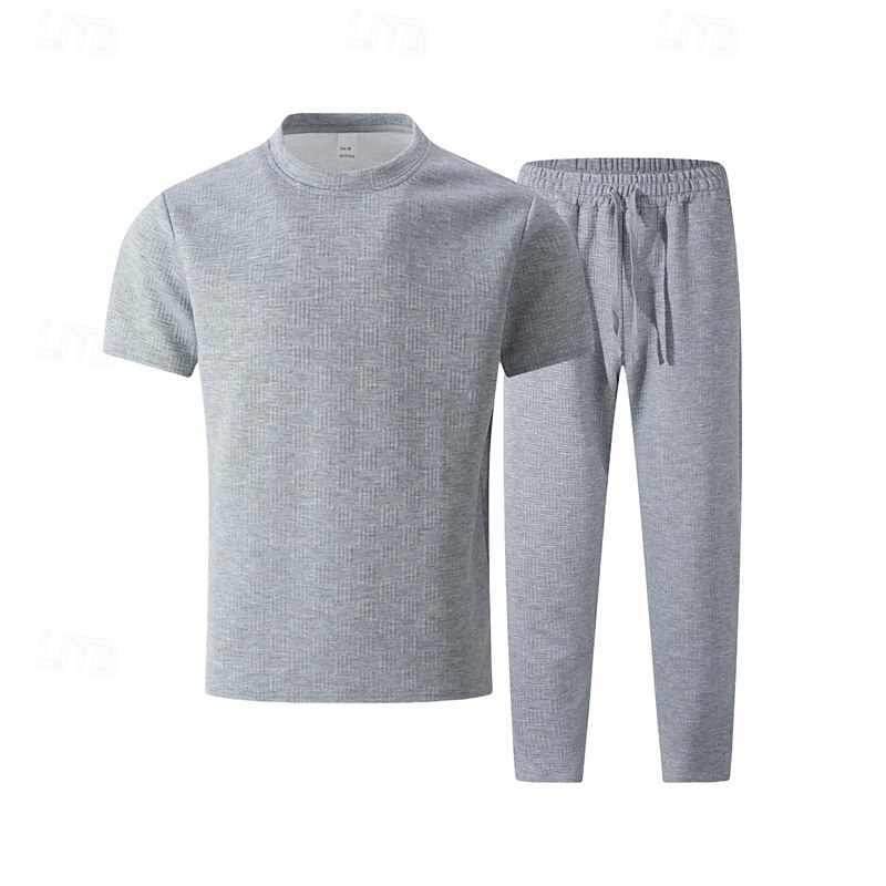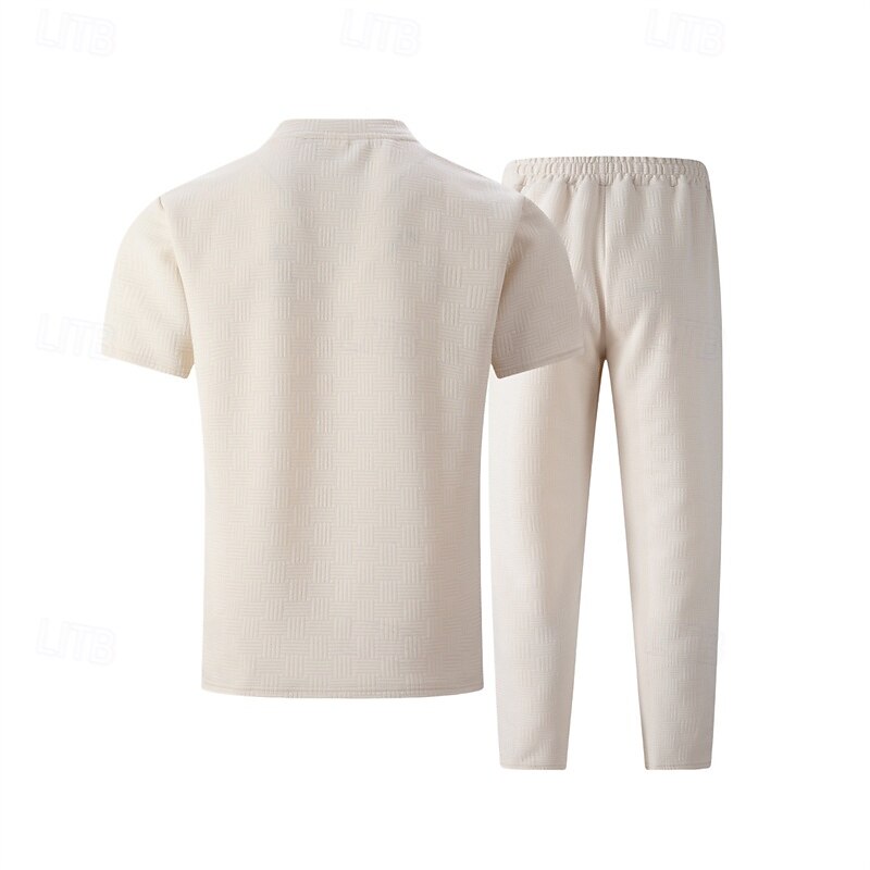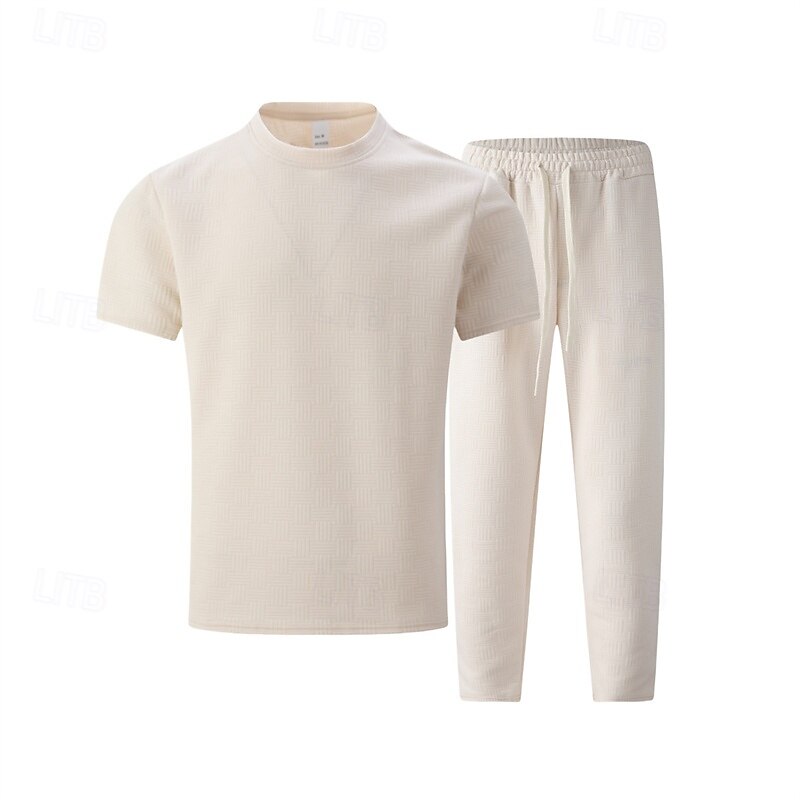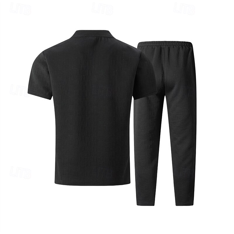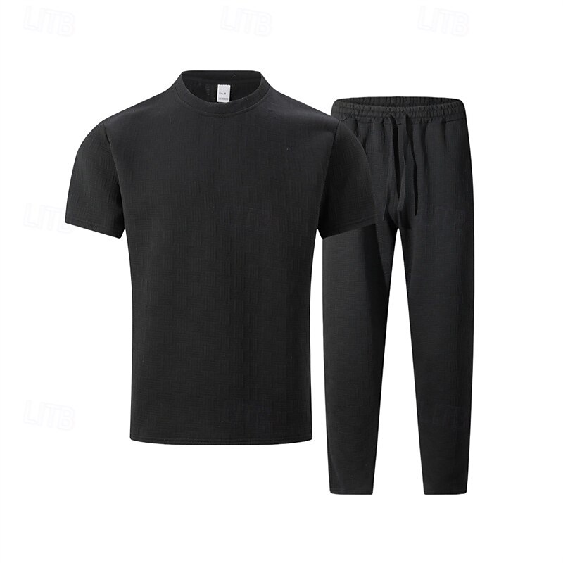 HOT ! Men's T-shirt Suits Shirt and Pant Sets 2 Pieces Outfits Short Sleeve Crewneck Summer Spring Plain Fashion Casual 2 Piece Vacation Daily Wear Going out Black White Khaki Top Tee for Men