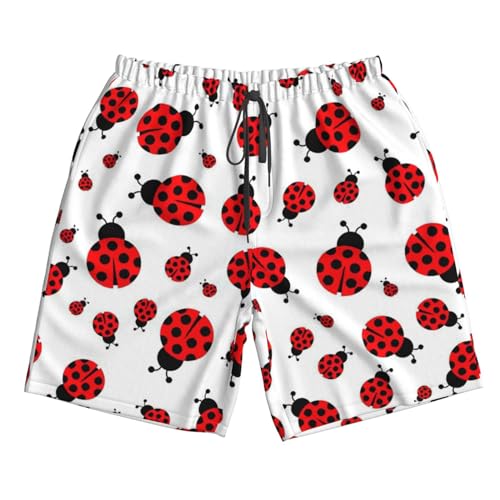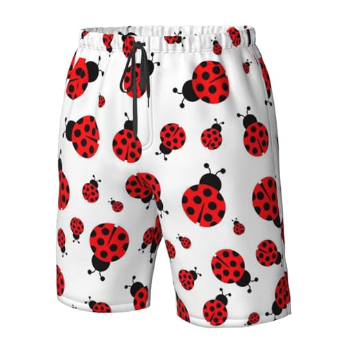 HOT ! WURTON Ladybug Print Men's Swim Trunks Quick Dry Beach Shorts with Pockets Lining Swimwear Bathing Shorts