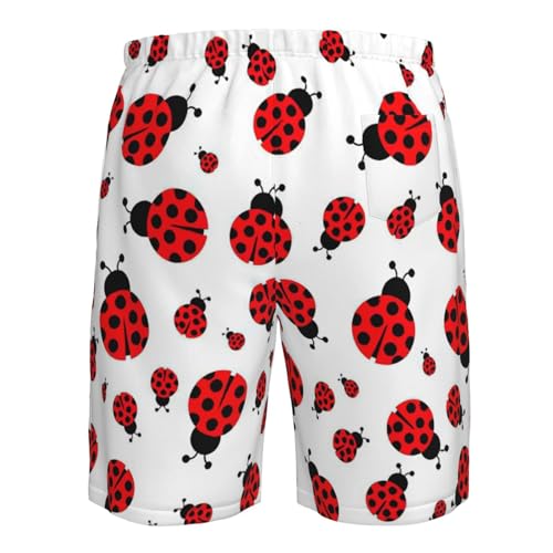 WURTON Ladybug Print Men's Swim Trunks Quick Dry Beach Shorts with Pockets Lining Swimwear Bathing Shorts 1