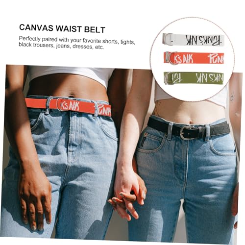 3pcs Canvas Waist Belt for Students Double Buckle Stylish Apricot Fashion Accessory for Jeans and Trousers 5