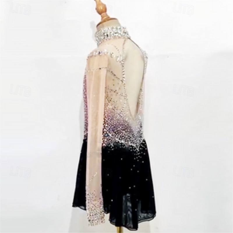 More information about Figure Skating Dress Women's Girls' Ice Skating Dress Pink Patchwork Mesh High Elasticity Training Competition Skating Wear Classic Crystal / Rhinestone Long Sleeve Ice Skating Figure Skating