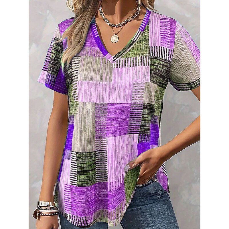 Women's Blouse Graphic Geometric Casual Short Sleeve V Neck Regular Tops Daily Print Blue Purple Orange Green Summer Spring 8